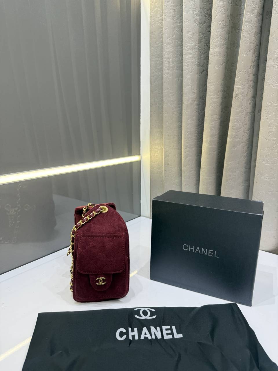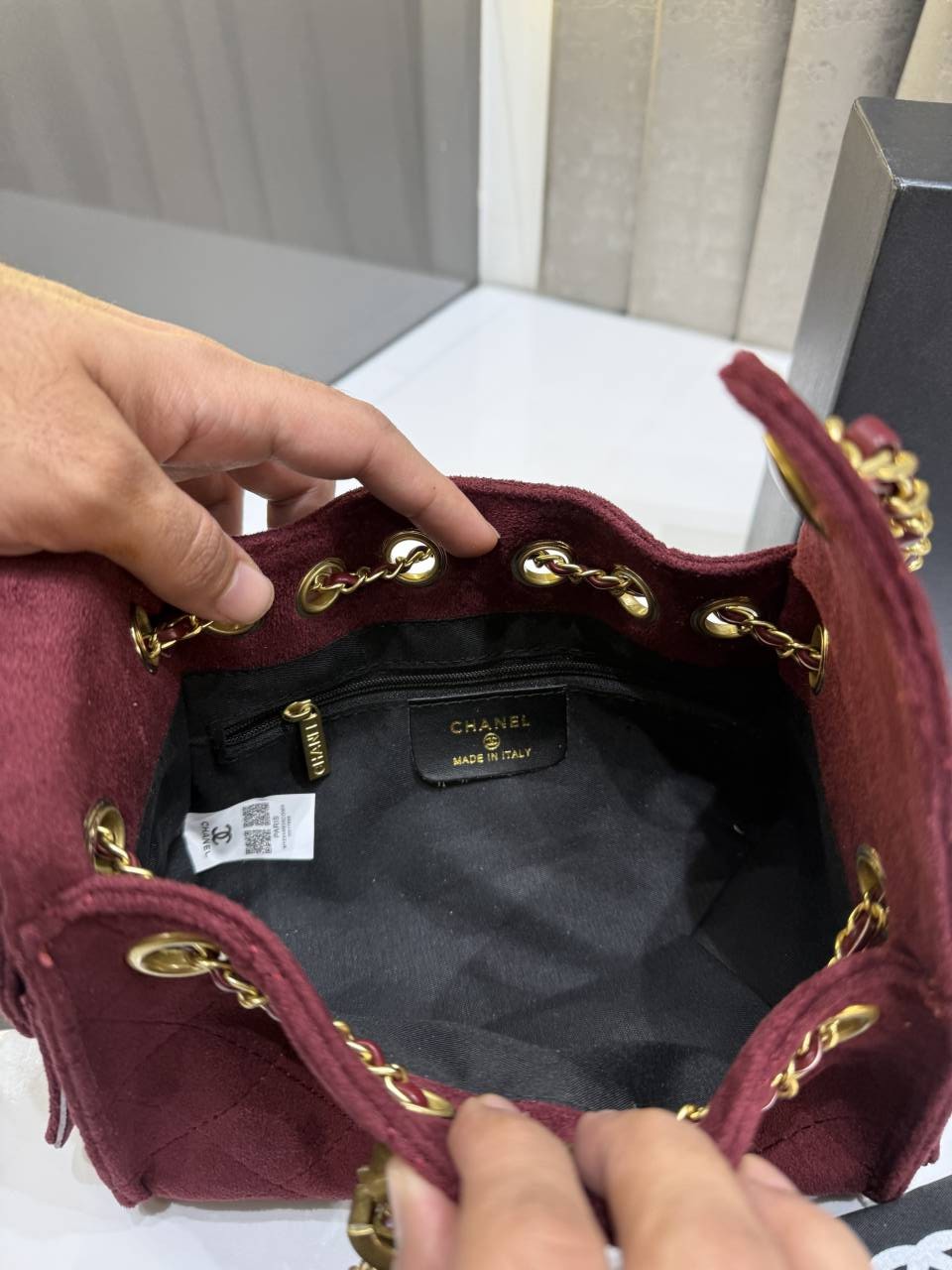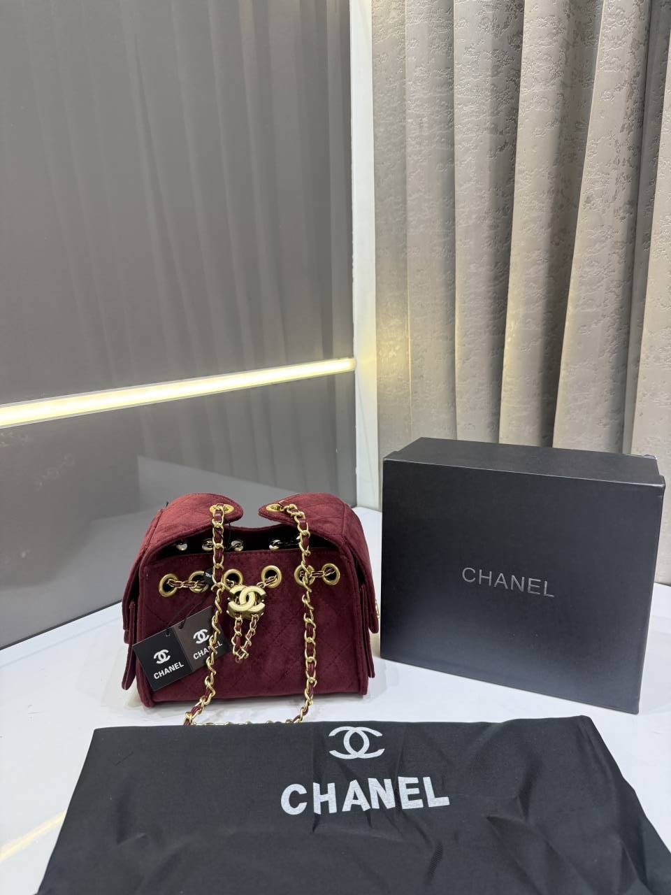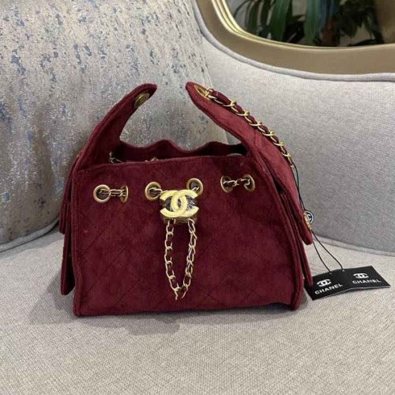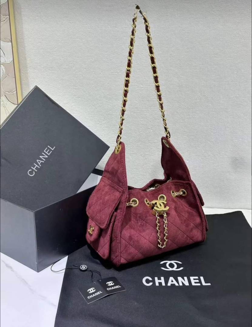 CHANE.L HOBO BURGUNDY SUEDE PREMIUM HAND BAG WITH OG BOX PACKING