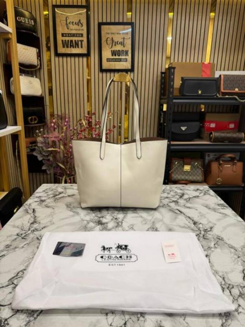 • Coach_North_Leather_Tote_Bag_Premium_Quality_With_Dust_Bag_(White)