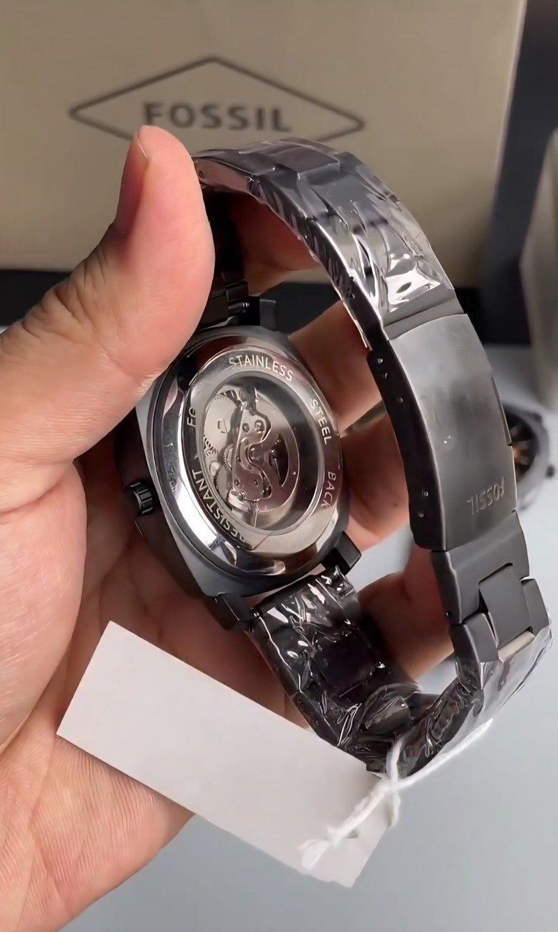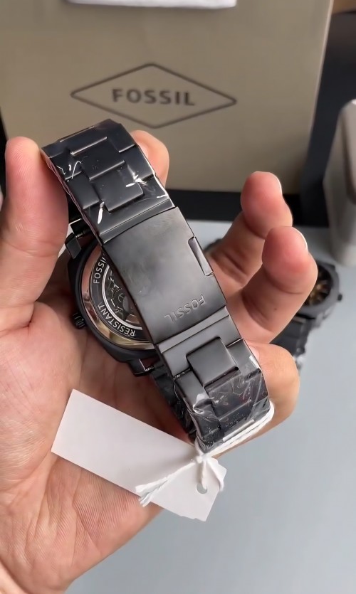 This is a Fossil Men's Machine Automatic Black Stainless Steel Watch with Original Brand Box packing. Features:- Movement: Automatic, meaning it winds itself with the movement of your wrist. Display: Analog Case Material: Stainless steel with a black finish Band Material: Stainless steel with a black finish Dial Color: Black with a skeletonized design, showcasing the inner workings of the watch Special Feature: Chronograph Clasp Type: Push-button clasp Style: Casual, modern
