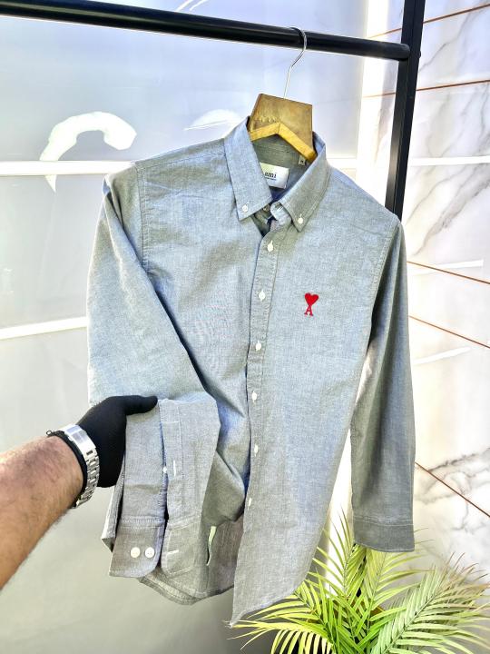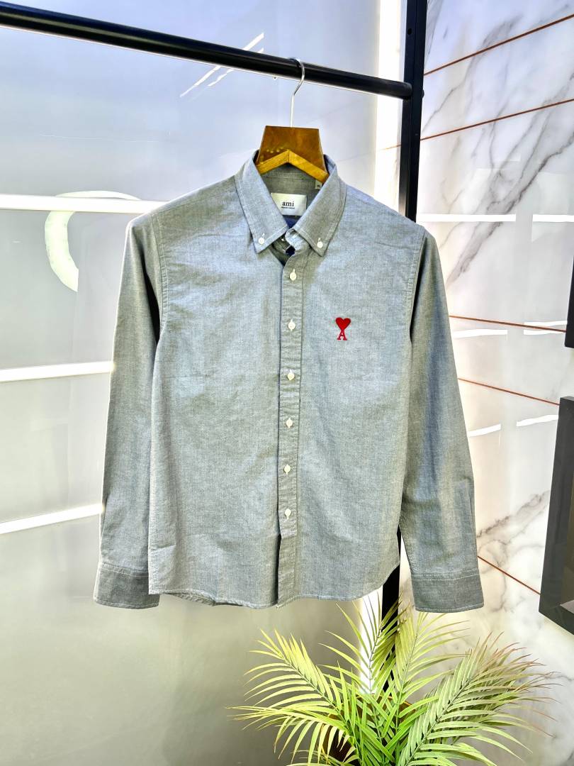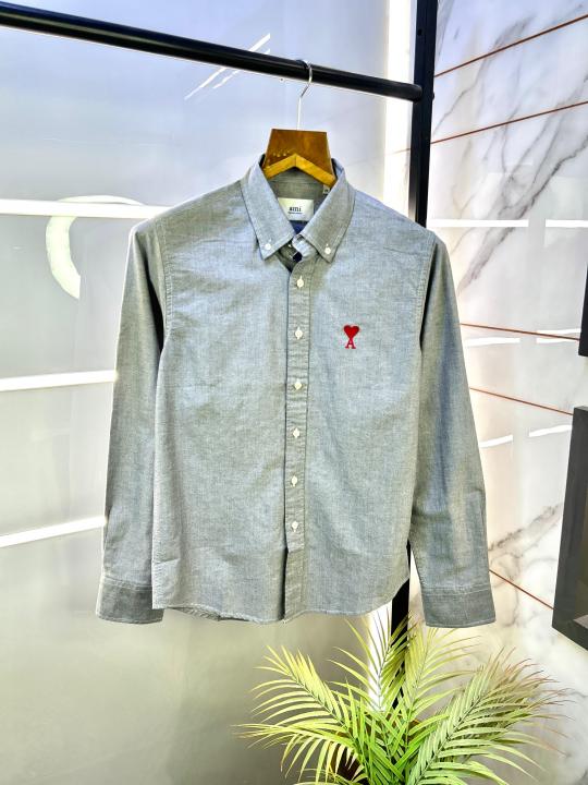 Sale Ami Dark Grey Embroidery Logo Oxford Lycra Premium Shirt F2770-DGY