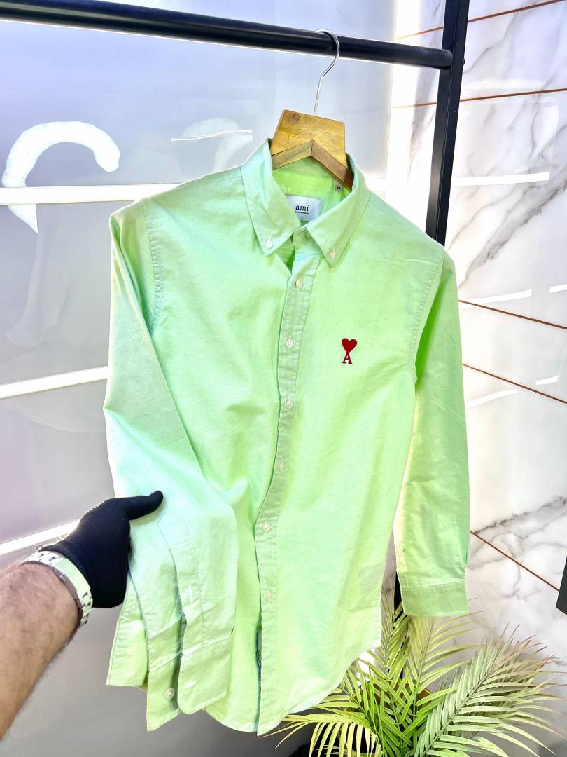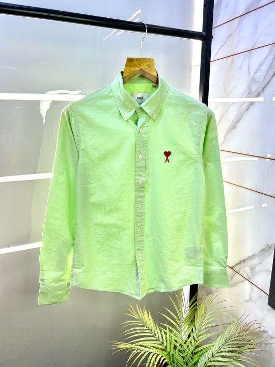 Sale Ami Green Embroidery Logo Oxford Lycra Premium Shirt F2770-G2