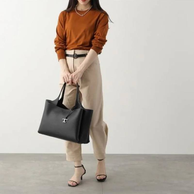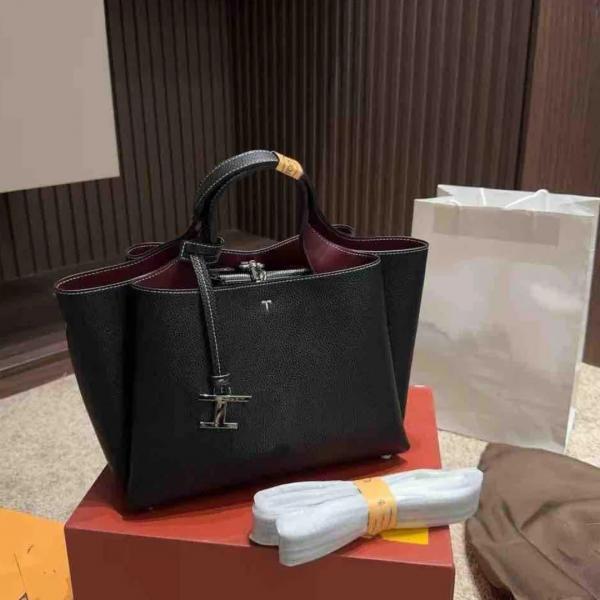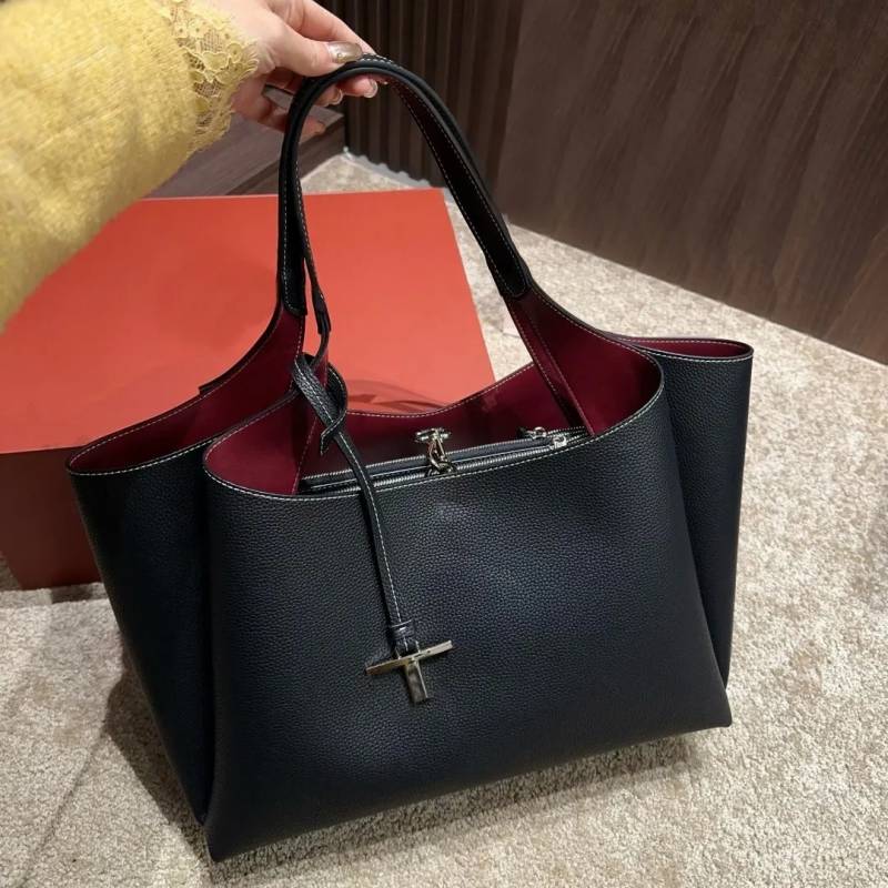 Tods T Timeless 2026 Premium Quality Leather Shopping Bag With OG Magnetic Box With Dust Bag (Black - 1129)