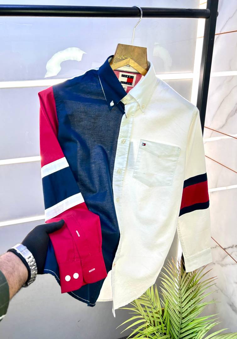 Tommy_Hilfiger Navy-White Oxford Lycra Premium Shirts F2752-W1